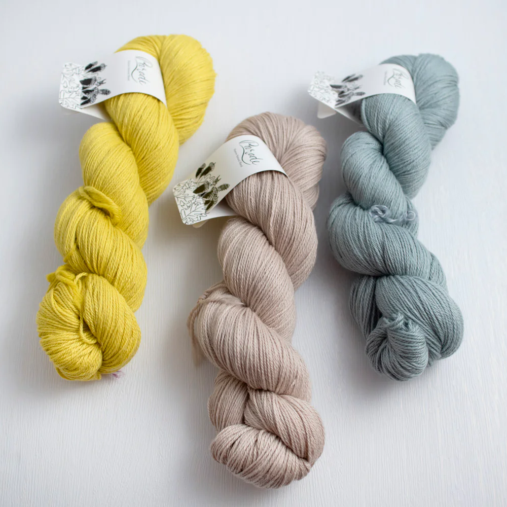 Parade is our first original yarn base and we focused on building a palette of colors that we would want to wear: shades in flattering tones with a depth similar to that of natural dyes.