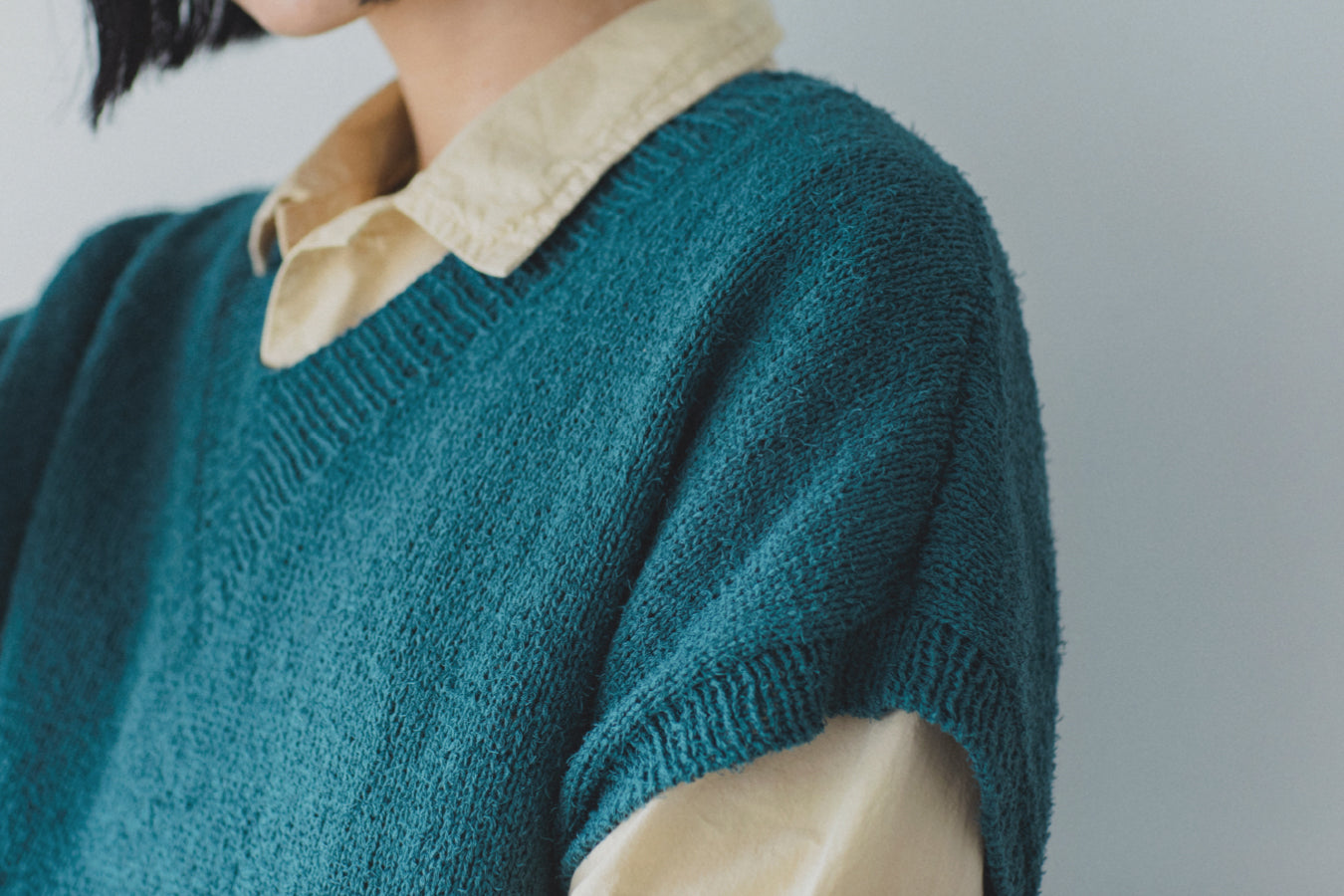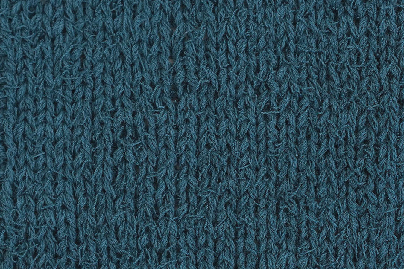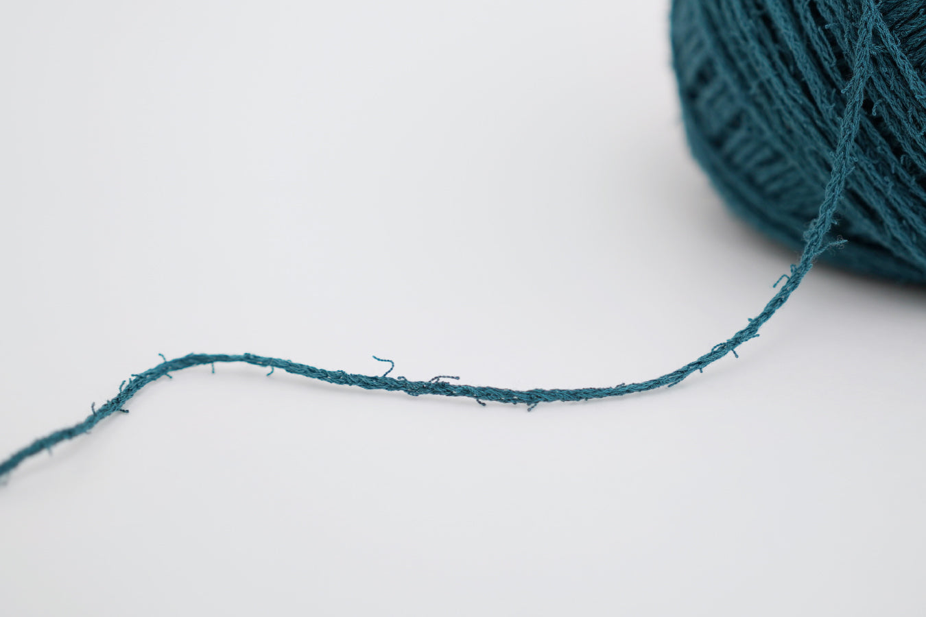 Twisted and curled single strands of 100% cotton are knitted into a chainette yarn to create Curly Cotton. The curled part jumps out and gives a unique expression to even a simple knitted fabric. It is light and comfortable, with a cool touch. The weight of the yarn is carefully selected so that you can enjoy making a wide range of products, from small items like crocheted bags and pouches to knitted garments.