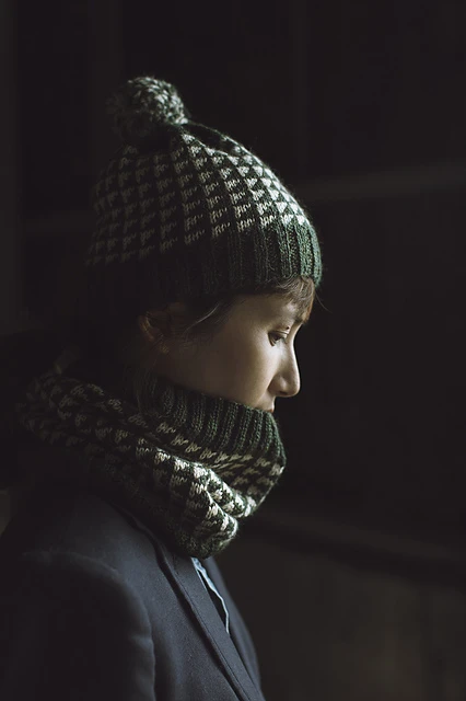 10 patterns: 4 sweaters, 1 cardigan, 1 scarf, 2 cowls, 1 hat, & 1 pair of mittens