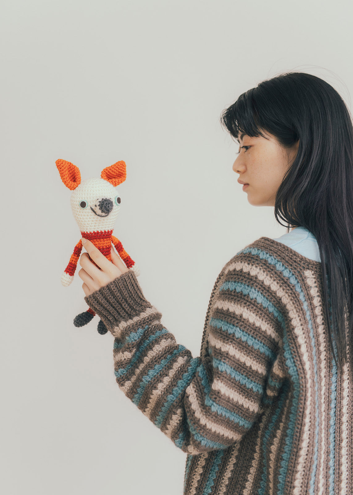 Designed by ChibiRu, Locke is a crocheted Chihuahua made with GENMOU yarn. Its adorable perky ears, round eyes, and upturned mouth make it always look happy. Dress it in your favorite colors!
