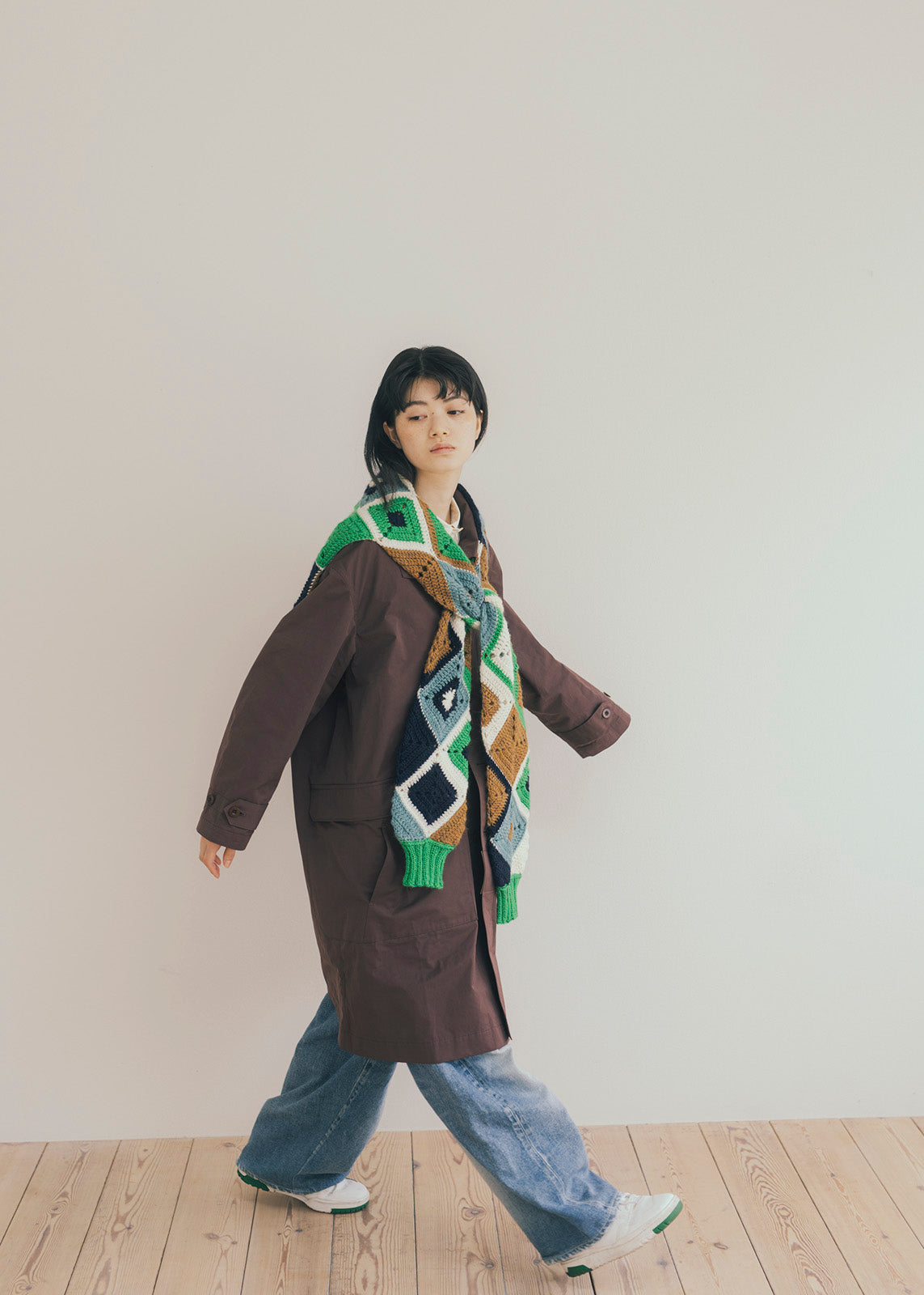 Designed by Jinhyun Cho, Mill is a scarf shaped like a sweater with arms raised high as if doing a victory salute. It was inspired by the energy of stretching after waking up in the morning. The combination of five colors offers a perfect balance between calmness and vibrancy. You can wear it over your shoulders, wrap it around your waist, or enjoy various other ways of styling. *Although it's shaped like clothing, it cannot be worn as a sweater, as it is simply a scarf.